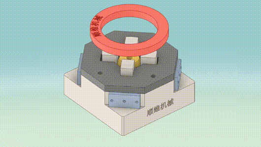 通过底部气缸的顶升,推动四个夹爪往外撑开,底部气缸收缩,利用弹簧力实现夹爪复位